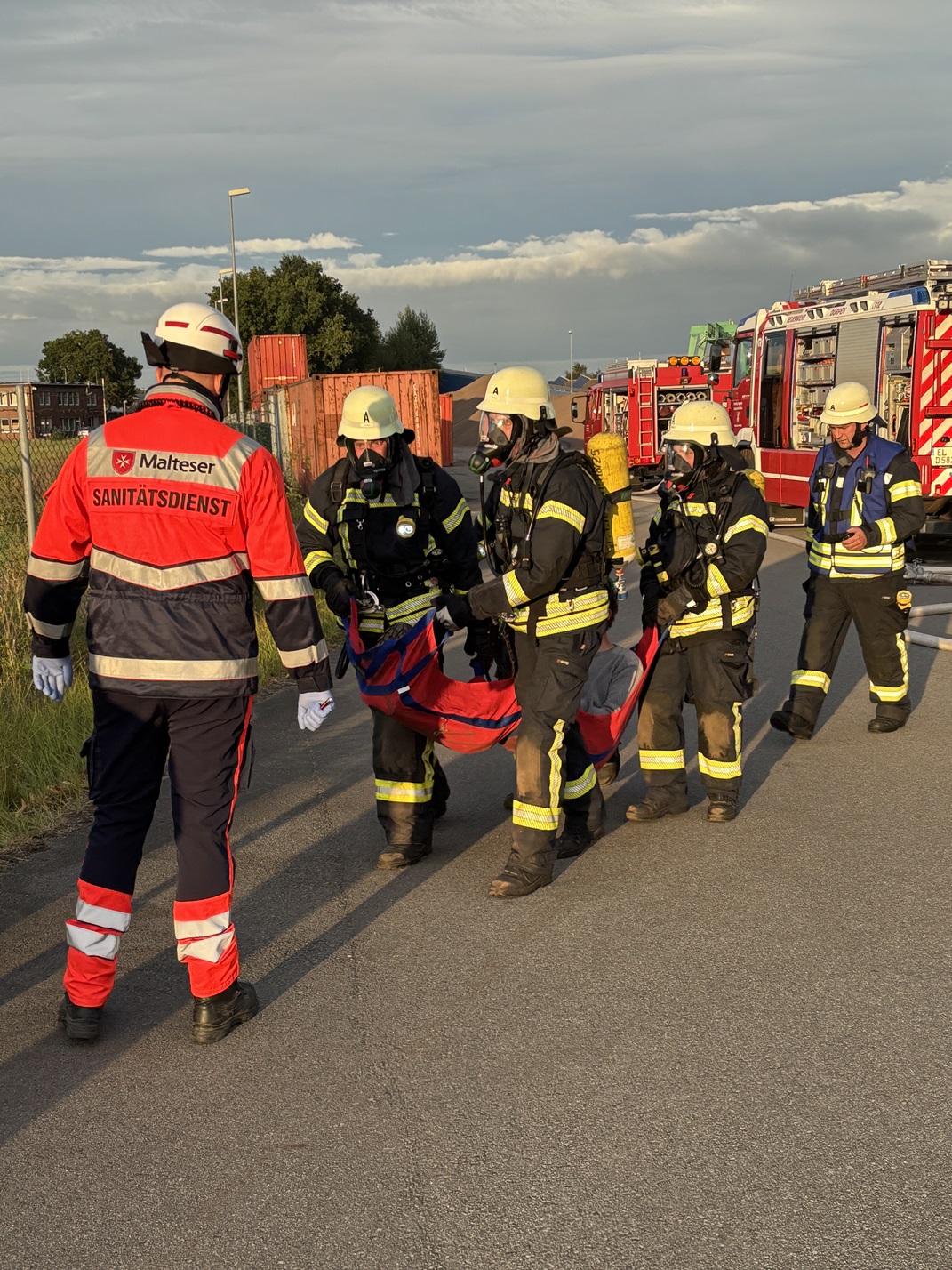 Auch Samtgemeindebürgermeister Hermann Wocken war erneut beeindruckt von der Schlagkraft und Zusammenarbeit der beteiligten Feuerwehren und Hilfskräfte. Ein besonderer Dank ging an die Firma DUK für das Bereitstellen des Übungsobjekts sowie an den Malteser Hilfsdienst für die wertvolle Unterstützung.