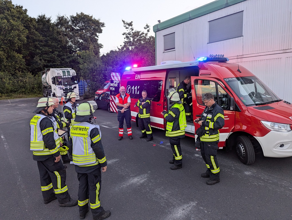 Am Mittwochabend rückten die Feuerwehren der Samtgemeinde Dörpen – mit den Ortsfeuerwehren Dörpen, Dersum, Heede und Kluse – sowie die Werkfeuerwehr UPM Nordland Papier und die Einsatzeinheit Emsland Nord des Malteser Hilfsdienstes zu einer groß angelegten Übung ins Dörpener Industriegebiet aus. Insgesamt waren rund 110 Einsatzkräfte an dem Übungsszenario beteiligt.