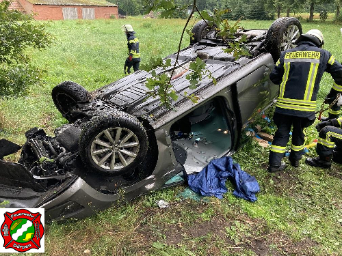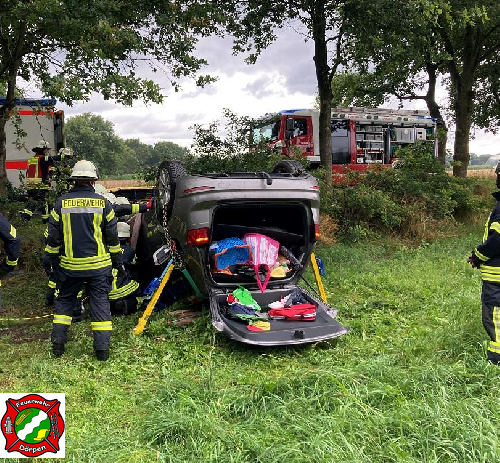 PKW kollidiert mit Baum und kippt auf das Dach – Feuerwehr Dörpen befreit 79-jährigen Fahrer aus dem PKW