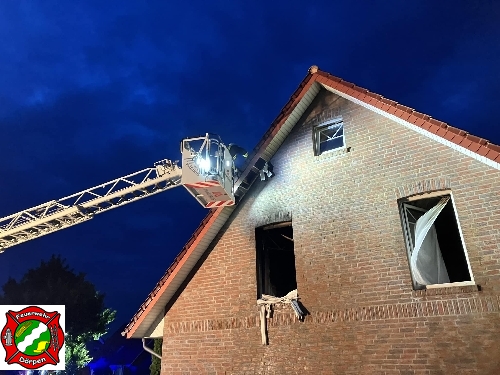 Dörpen. Am Donnerstagabend gegen 22:15 Uhr ist die Feuerwehr Dörpen mit dem Alarmstichwort „F3Y_Gebäude“ in die Uhlandstraße in Dörpen alarmiert worden. In der Alarmierung wurde von einem Feuer mit Menschenleben in Gefahr ausgegangen, sodass neben der Feuerwehr Dörpen auch die Feuerwehr Kluse unterstützend mitalarmiert wurde. Des Weiteren die Drehleiter der Feuerwehr Surwold, da die der Feuerwehr Dörpen bis auf Weiteres aufgrund eines technischen Defekts nicht einsatzbereit ist.